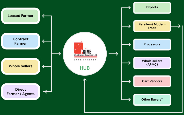 Prime Fresh Limited follows a Value Chain Model for its complete Supply Chain Management of Fruits & Vegetables Business.